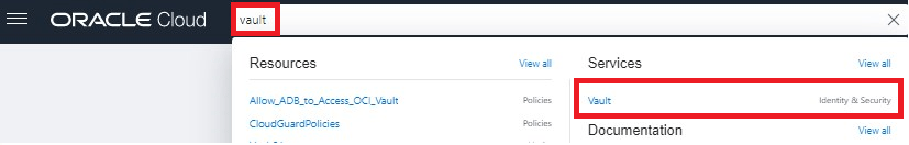 Search for the Vault service in Identity & Security.