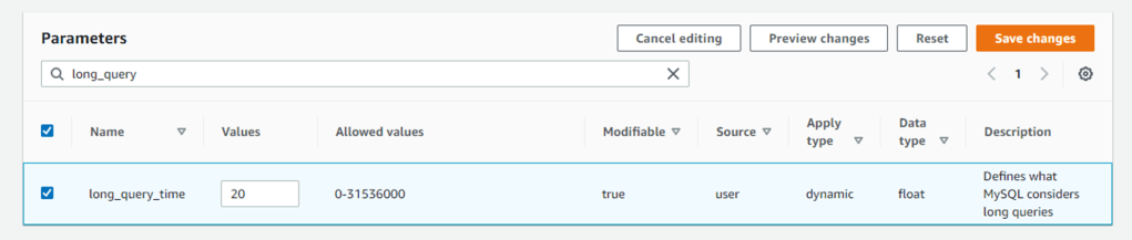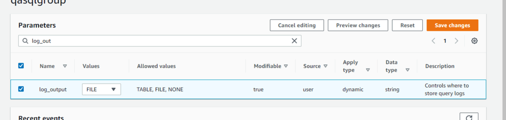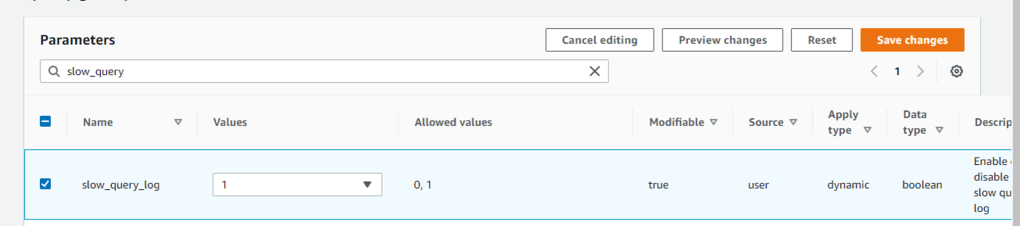 AWS console – >  RDS -> DB Instances -> ammaprd -> configuration -> parameter group(e.g. “qasqlgroup”)