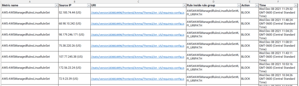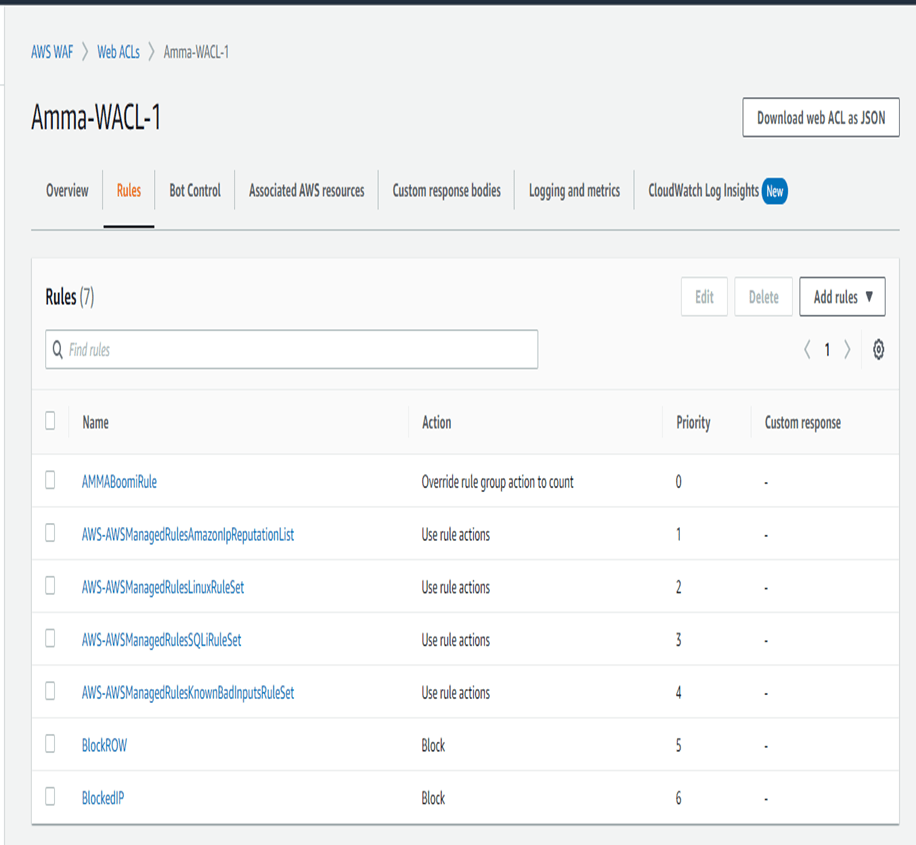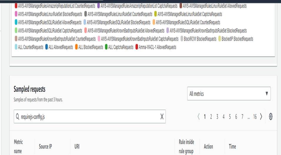 6. Click on AWS-WAF, Click on Amma-WACL-1 and go to Overview Tab then Sampled requests. Ensure the concerned requests are not getting blocked