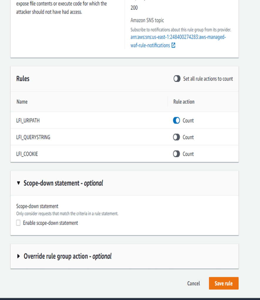5. Click Edit and make Rule Action for LFI_URIPATH as Count and Save it